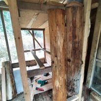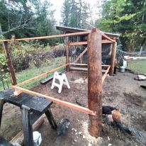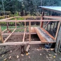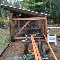 It's time to make room for the newest additions! I had a pile of scrap, a few hand tools, and lots of grit!! A determined girl can get things done once she sets her mind on it. I had never built any sort of structure before, and uneven boards make things tricky ----